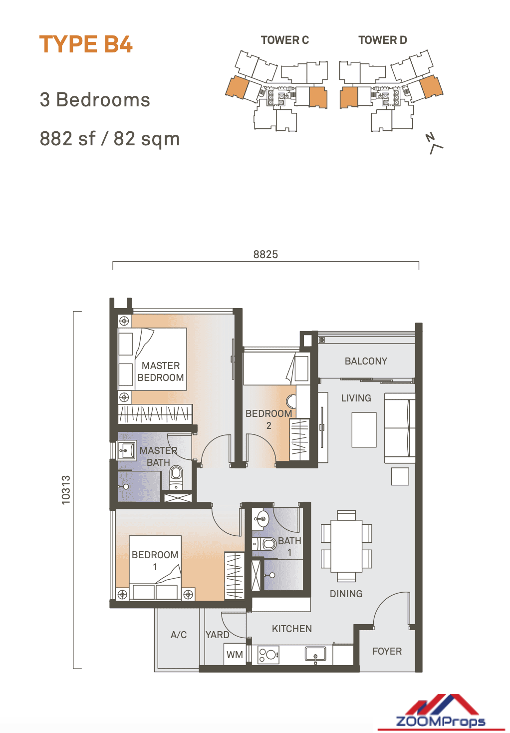• Property Size: 957 Sq.ft